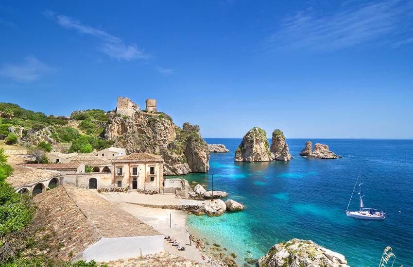 Next, we continue our adventure to the charming village of Scopello, where we’ll explore the historic tonnara, a former tuna fishery, and marvel at the towering faraglioni rocks. We’ll also visit the Baglio, a traditional Sicilian structure in the village, and taste the renowned "cunzato" bread, a typical street food that embodies the flavors of the region.
