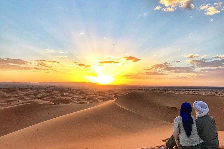 A highlight of the tour is the Sahara Desert experience in Merzouga. Here, you’ll embark on a camel trek across the golden dunes of Erg Chebbi, witnessing both sunrise and sunset in a magical desert setting. Spend the night under the stars in a traditional or luxury desert camp, with opportunities to interact with Berber nomad families and learn about their way of life. The journey continues through Ouarzazate, where you’ll explore film studios and the historic Taourirt Kasbah, before concluding at the UNESCO World Heritage Site of Ait Benhaddou. Ending in Marrakech, this 4-day tour offers a rich blend of nature, adventure, and cultural immersion, creating memories to last a lifetime.