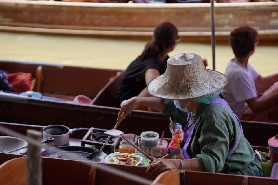 Explore the vibrant canals of Damnoen Saduak Floating Market and sample local treats