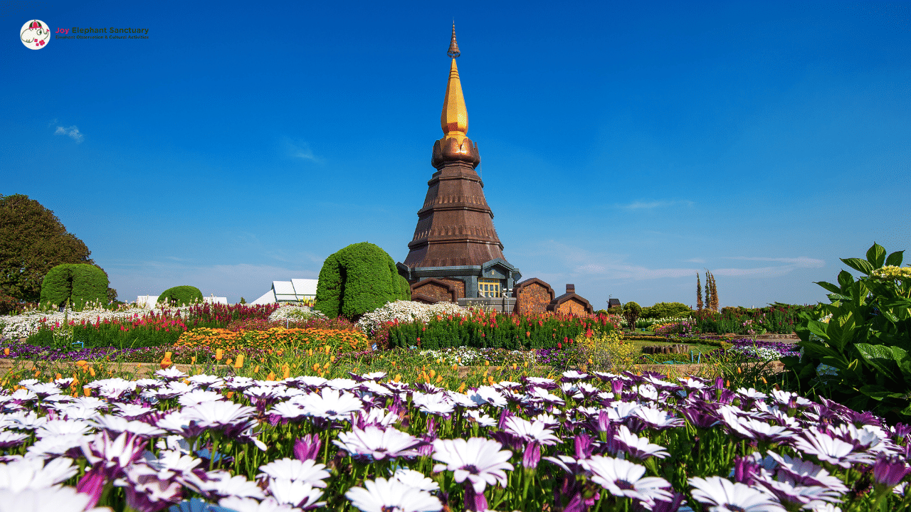 The journey continues to the breathtaking Doi Inthanon National Park, home to Thailand’s highest peak. Feel the refreshing mountain breeze as you explore the misty slopes and vibrant ecosystems of this national treasure. Hike along the Pha Dok Siew Nature Trail, where you’ll discover cascading waterfalls, emerald rice terraces, rare flora and fauna, and an organic Karen Hill Tribe coffee farm. End your day reflecting on the beauty of nature and your meaningful encounter with elephants before returning to Chiang Mai, your heart full of peace and unforgettable memories.