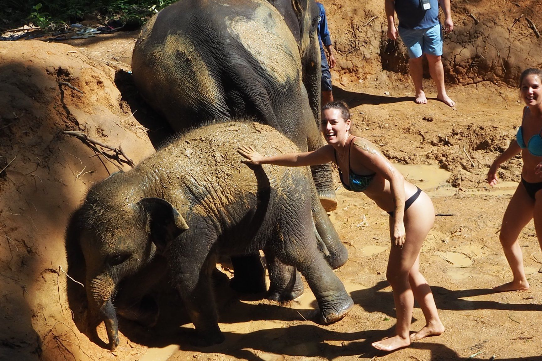 Swim with the elephants and help bathe them after rubbing them down with mud