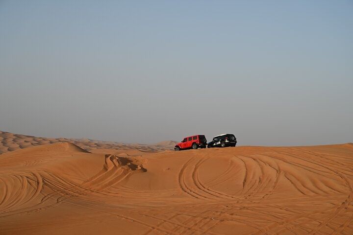 Step into the heart of the Arabian desert for an adventure that perfectly blends excitement, culture, and relaxation. Your journey begins with an adrenaline-fueled dune bashing experience across the golden red dunes of Dubai. Led by expert drivers who combine skill with safety, you’ll race up and down the sand slopes, feeling the rush of adventure with every turn. The thrill continues with a longer and more immersive camel trek, offering a chance to soak in the vast desert beauty and glimpse the traditional Bedouin lifestyle that has thrived for centuries among these dunes.