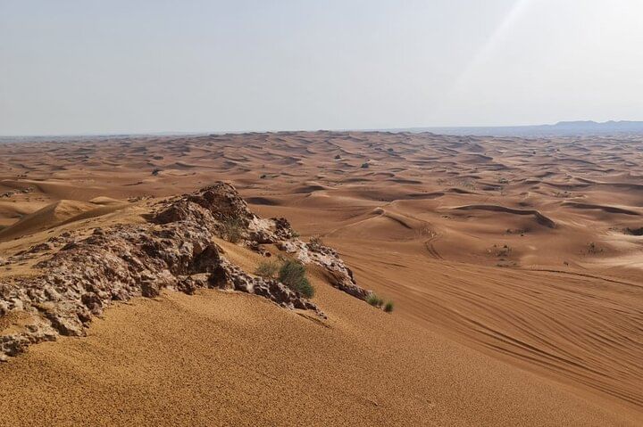 Your adventure continues with sandboarding, a fun and energetic activity where you glide down the soft dunes on a board. Capture the perfect photo against the stunning backdrop of the endless desert before enjoying a peaceful camel ride across the sands, offering a slower, more traditional way to experience the beauty of the Arabian wilderness. Refresh yourself with a cool drink before heading back, carrying with you unforgettable memories of the desert’s magic and adventure.