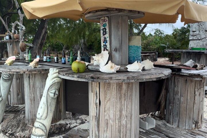 Stop at the lively Tiki Bikini Bar on Long Bay Beach for a refreshing coconut drink