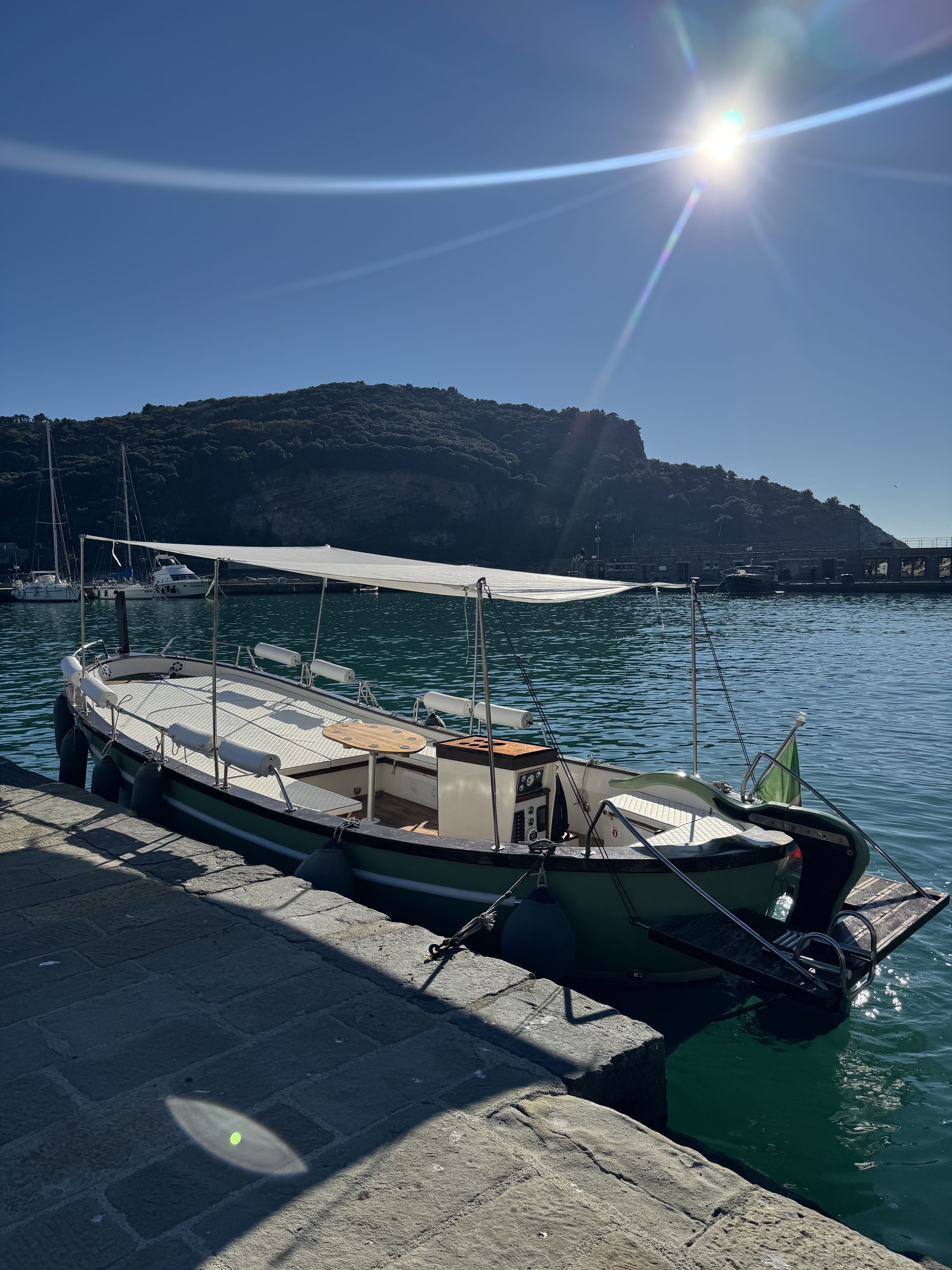 The adventure continues past the pyramid-shaped Scoglio Ferale and the shallow, vibrant waters nearby, offering a chance to admire the striking seabed. Sail along the cliffside village of Monesteroli before entering the protected waters of the Cinque Terre Marine Park. Follow the coastline to Corniglia, then retrace the path past the scenic Manarola and the famous Via dell’Amore to reach the charming Riomaggiore. On the return journey to La Spezia, we will make a final relaxing stop for one last swim, enjoying local food and drinks. This magical experience blends culture, nature, and gastronomy, creating a journey you will treasure forever. Weather and sea conditions may affect the route, and as captain, I reserve the right to adjust the itinerary to ensure everyone’s safety.