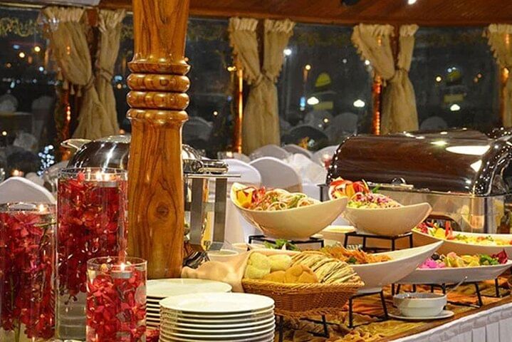 As you glide through the marina, enjoy a delicious buffet dinner featuring international and regional dishes. The experience is enhanced with a captivating live tanoura dance performance, adding a touch of local