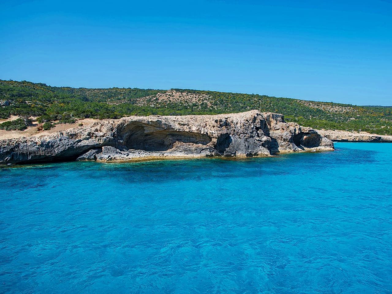 As the adventure continues, the boat approaches the mesmerizing Manolis Sea Caves, a natural wonder sculpted over time by the relentless power of the sea. These dramatic caves, carved into the rocky shoreline, create a striking contrast against the deep blue waters, offering a perfect opportunity to admire the beauty of Cyprus' rugged coastline. The ever-changing shapes and colors of the caves make them a captivating sight, adding to the magic of your sea voyage.