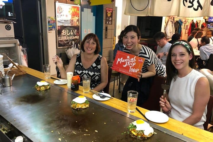 Start your local food adventure in Hiroshima with a visit to an izakaya specializing in Okonomiyaki, a savory Japanese pancake. As you enjoy a refreshing Japanese drink, watch as the chef cooks your Okonomiyaki right at your table on a flat iron grill. This interactive experience adds a special touch to your meal as you immerse yourself in Hiroshima's vibrant food scene.
