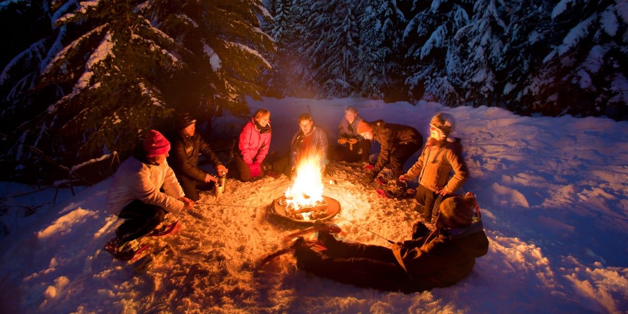Trek through a snowy wonderland on a night snowshoeing adventure