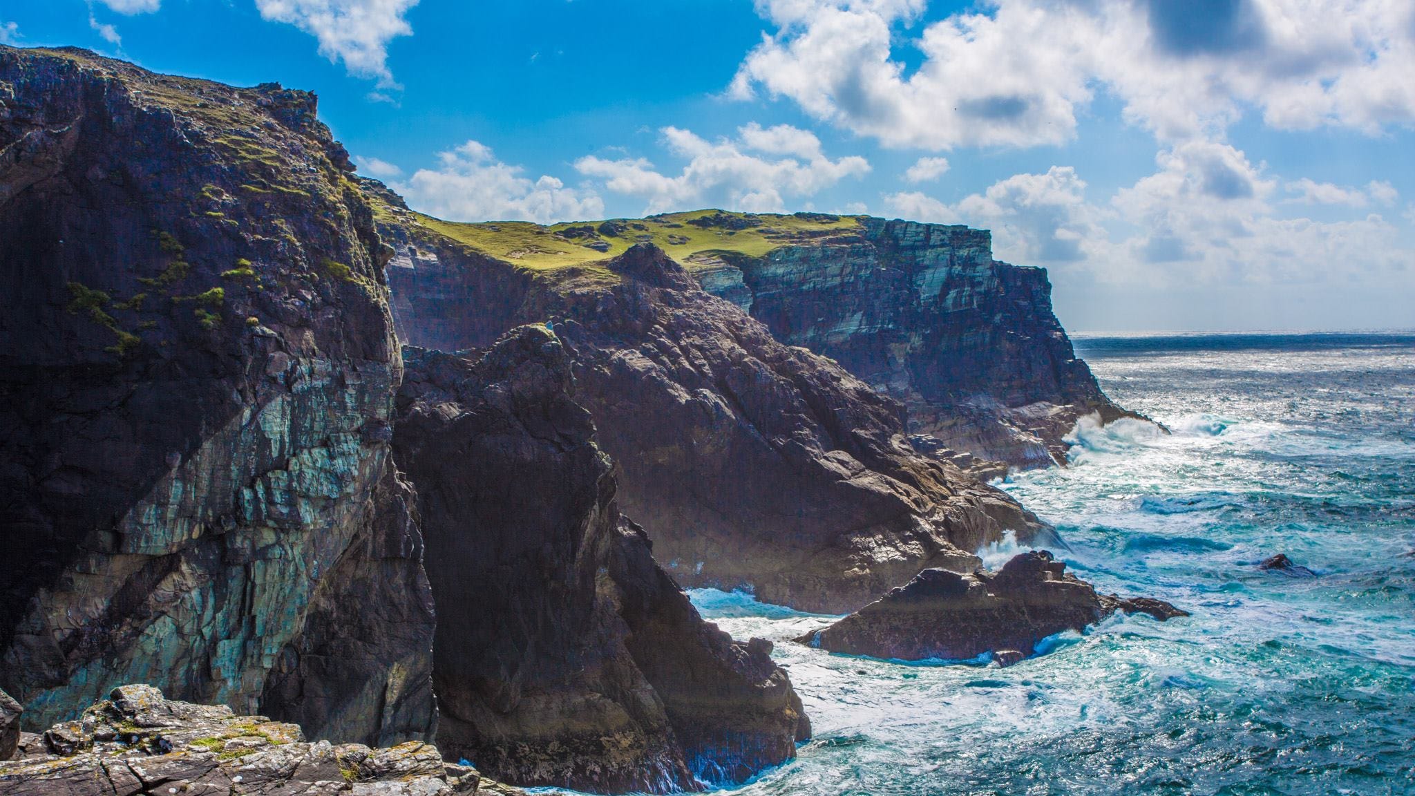 En route, try your hand at sea fishing before arriving at the beautiful and rugged Inishturk Island. This remote gem rises dramatically from the Atlantic with steep hills and towering cliffs. Explore the ruins of an old signal tower perched seven hundred twenty two feet above sea level, offering spectacular views of the ocean and coastline.