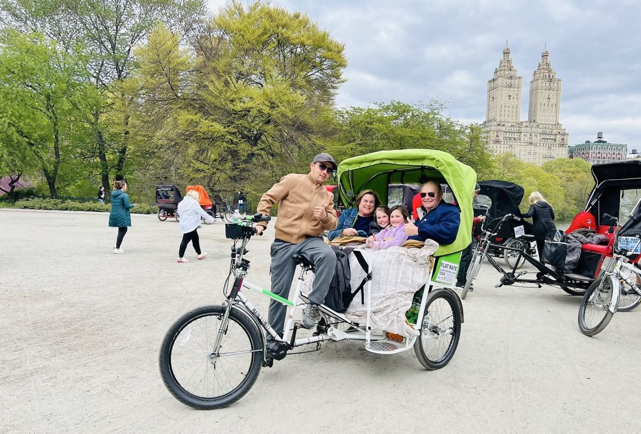 Discover the magic of Central Park in a whole new way with our guided Pedicab Tours. Whether you're looking for a romantic date, a fun family outing, or a relaxed sightseeing adventure, this eco friendly tour lets you explore over eight forty three acres of New York’s most iconic green space without the hassle of walking. Enjoy the comfort of a pedicab while our expert guides share insider stories, historical facts, and movie trivia about this world-famous urban oasis.