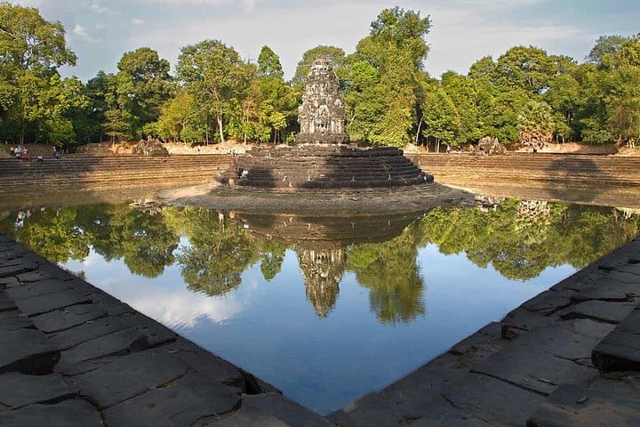 On Day 1, your adventure begins with a visit to Pre Rup Temple, a striking example of Khmer architecture known for its pyramid-like structure. Next, you'll head to Banteay Srei Temple, often referred to as the "Citadel of Women," which is renowned for its exquisite pink sandstone carvings, showcasing the unique Banteay Srei style. The tour continues to East Mebon Temple, a 10th-century temple built in the middle of a large reservoir, followed by Ta Som Temple, a small yet picturesque temple. Afterward, you will visit Neak Pean, a temple set on an artificial island in the middle of a baray, and Preah Khan Temple, which is still largely covered by the jungle. Along the way, you'll stop for lunch at a local restaurant, giving you a chance to taste traditional Cambodian dishes. Afterward, the day ends with a stunning sunset view from Bakheng Mountain, offering a panoramic view of the Angkor archaeological park.