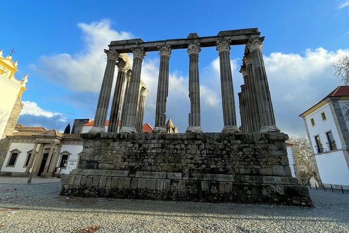 Embark on a full-day journey through the heart of Alentejo with Burriscas Adventure and discover the rich blend of history, culture, and prehistoric wonders that define the region. Begin your experience with a convenient pick-up and head straight to the charming city of Évora, a UNESCO World Heritage Site. Explore iconic landmarks such as the Roman Temple and the magnificent Sé de Évora (Cathedral), and enjoy some free time to wander the picturesque historic center. The tour continues with a visit to the hauntingly fascinating Chapel of Bones and a scenic drive past the impressive 16th-century Silver Water Aqueduct.