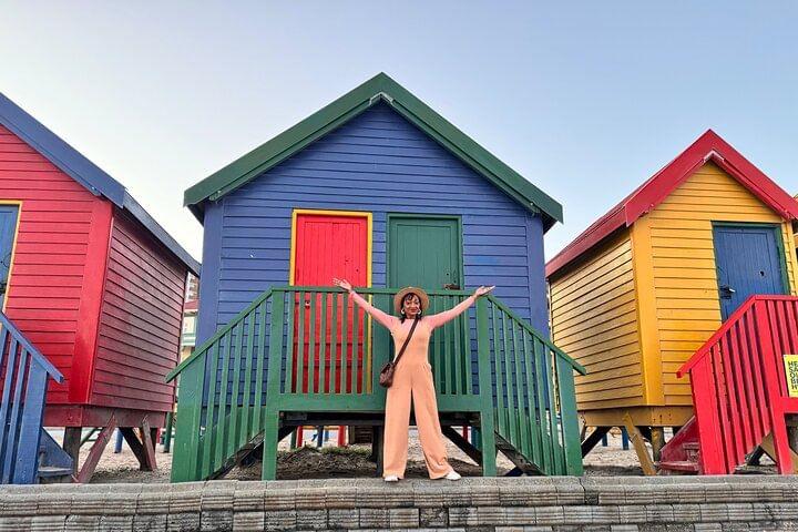 Stop at Muizenberg Beach, known for its colorful huts and surfing culture