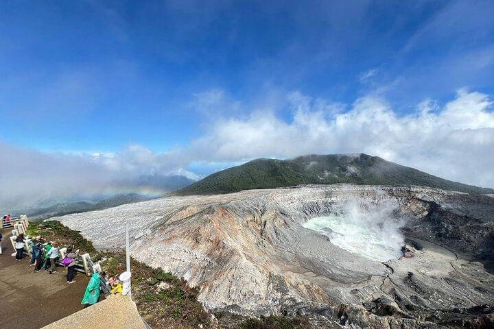 Begin your adventure with a scenic drive up the slopes of Poás Volcano, one of Costa Rica’s most iconic and accessible volcanoes. Along the way, enjoy the lush green views of coffee plantations, fern fields, flower nurseries, and strawberry farms that blanket the landscape. Upon reaching Poás Volcano National Park, you’ll have the opportunity to gaze into the massive main crater, known for its dramatic sulfuric fumaroles and steaming vents. The crisp mountain air and panoramic vistas create a truly unforgettable experience as you explore the park’s well-maintained trails surrounded by cloud forest.