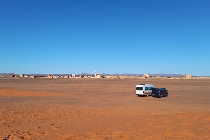 Accommodation is thoughtfully arranged with two nights in comfortable hotels and one unforgettable night in a luxury desert camp, where private tents come with en-suite bathrooms. Private rooms and tents are available for couples, friends, or families—choose between double, twin, triple, or quadruple arrangements. Your desert night includes traditional Berber music around the campfire and stargazing in the peaceful Sahara. The tour also includes a local guide at Kasbah Ait Ben Haddou and entrance to the Cinema Studio in Ouarzazate. This well-rounded journey offers culture, nature, and adventure, all wrapped into one immersive Moroccan experience.