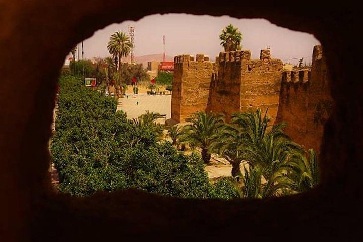 Taroudant, often called the "Grandmother of Marrakech," lies in the heart of a lush, fertile valley surrounded by the majestic High Atlas Mountains. Just 30 km southeast, perched above the charming village of Tiout, you'll find the ruins of an ancient kasbah—now transformed into a scenic tourist restaurant. From this rocky outcrop, visitors are treated to stunning panoramic views over the Souss Valley and the Atlas peaks. The palm grove of Tiout, with its serene beauty, once served as the filming location for the 1954 classic Ali Baba and the Forty Thieves starring Fernandel, adding a cinematic layer to its rich cultural history.