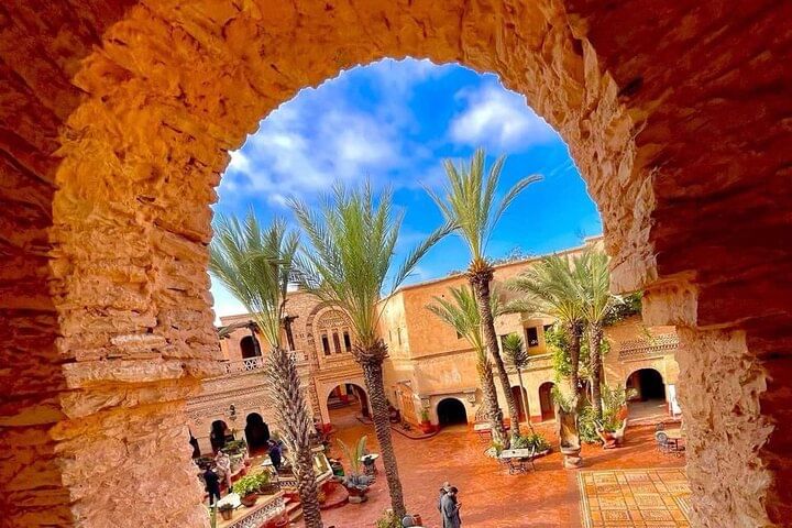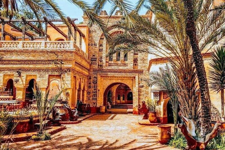 Continue your exploration at the Coco Polizzi Medina, a reconstructed gem inspired by traditional Berber architecture. Wander the cobbled alleys and admire artisan crafts, colorful textiles, and intricate carvings that reflect Morocco’s vibrant culture. Take time to experience the lively energy of the local market, where artisans showcase handmade goods in an atmosphere filled with color and culture. Conclude your tour atop the scenic hill of Ou Fella, where the panoramic view of the bustling port and coastline creates a perfect end to your cultural journey before returning to your hotel.