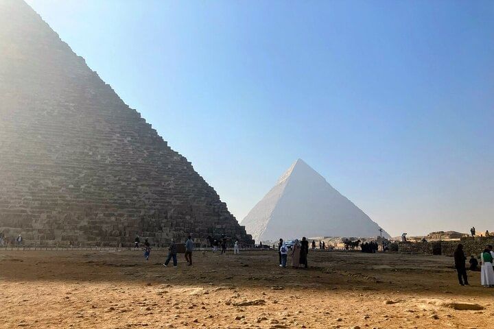Step into the heart of ancient Egypt on a curated half-day experience that blends awe-inspiring history with vibrant local culture. Perfect for travelers short on time yet eager to dive deep into Cairo's most iconic attractions, this tour begins with a visit to the majestic Great Pyramids of Giza. Stand before the towering structures of Khufu, Khafre, and Menkaure—testaments to ancient engineering and ambition—and explore the surrounding desert landscape. Your private Egyptologist guide will reveal the secrets, legends, and historical significance behind these timeless wonders, ensuring an enriching and personalized experience.