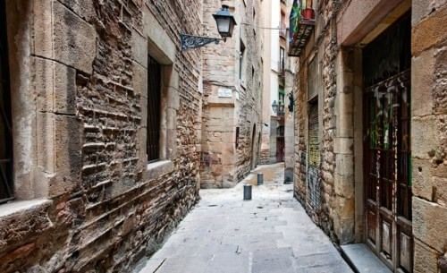 View of historical landmarks like the street of the butcher shops and Banys Nous