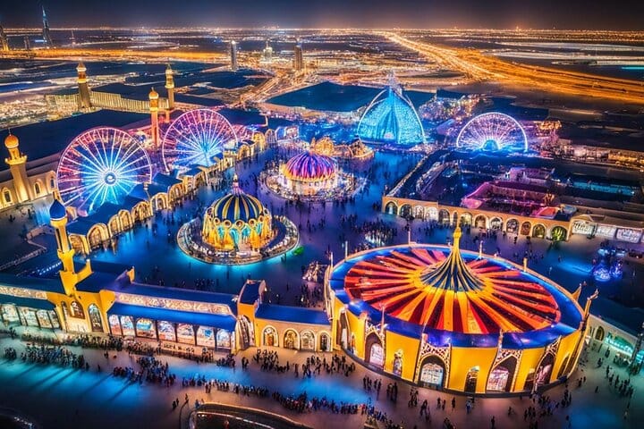 Explore the world in one place with a visit to Global Village, one of Dubai’s most colorful and culturally diverse attractions, where over 90 cultures come together in a vibrant celebration of heritage, food, art, and entertainment. Stroll through beautifully designed pavilions representing countries from around the globe, each offering unique experiences such as traditional performances, street food, handicrafts, and souvenirs. Families can enjoy exciting rides and games at the funfair, while live shows and musical performances bring added energy to the evening. With private round-trip transfers from your hotel or residence, the entire experience is made easy and comfortable, allowing you to relax and focus on enjoying the festive atmosphere. Whether you’re sampling exotic dishes, watching cultural dances, or browsing global markets, Global Village offers an unforgettable experience that blends entertainment and education in one dynamic destination perfect for all ages.