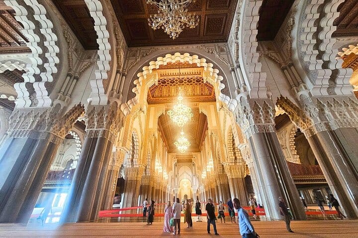 Wander through lively souks and traditional markets where the scents of spices and the hum of daily life give you a true taste of Moroccan culture. You’ll gain insights into local customs, craftsmanship, and even pick up a few words in the Moroccan dialect to make your experience more immersive. Along the way, enjoy a stop at a traditional restaurant to sample authentic Moroccan cuisine, followed by a relaxing coffee break with a glass of the iconic mint tea. With a focus on cultural connection and comfort, this tour offers a warm, personal look at Casablanca that’s both memorable and fun.