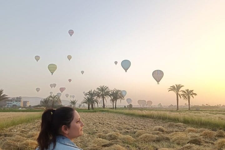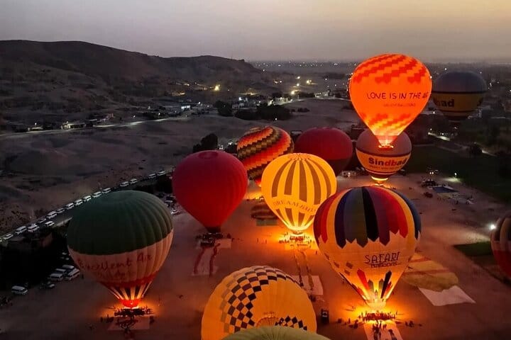 Experience the magic of Luxor like never before with a breathtaking sunrise hot air balloon ride over one of the world’s most historic landscapes. As you drift gently above the Nile River, marvel at the sprawling Valley of the Kings, the majestic Temple of Hatshepsut, and other iconic monuments bathed in the golden light of the early morning sun. The peaceful flight offers a unique perspective on Egypt’s ancient wonders, providing unforgettable views and perfect photo opportunities that capture the beauty and grandeur of Luxor from the sky.