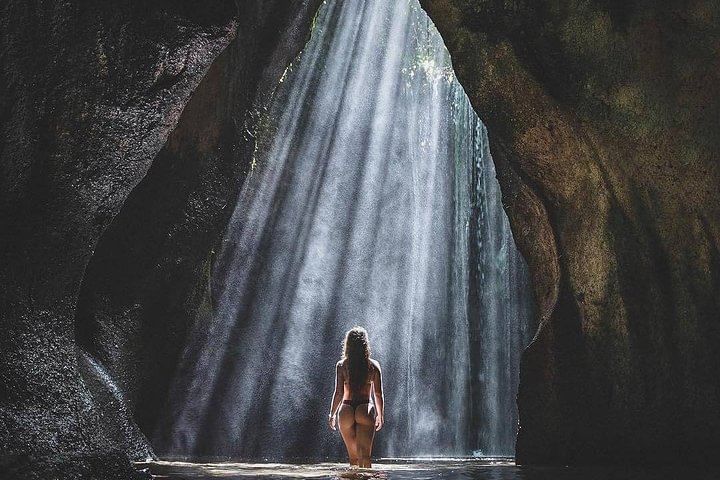 Start your adventurous journey in Bali with a visit to some of the island’s most beautiful and famous waterfalls, each offering its own unique charm and scenery. Begin with Tibumana Waterfall, a serene hidden gem surrounded by lush greenery, perfect for a refreshing swim in its clear waters and a peaceful escape into nature. Continue your adventure to Tukad Cepung Waterfall, a magical spot where the sunlight shines dramatically through a cave opening, creating a breathtaking play of light and water that feels like stepping into a secret paradise.